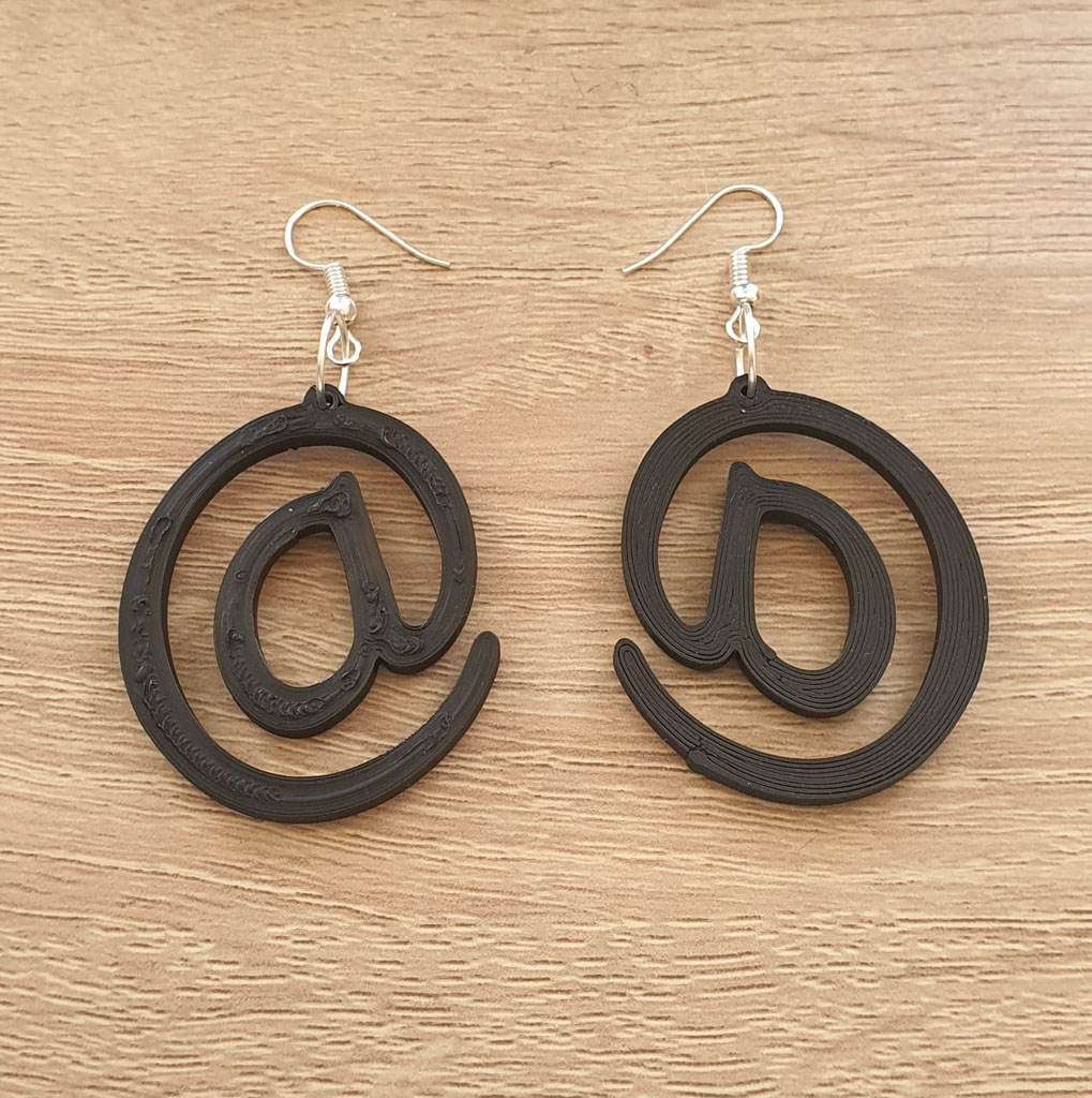 Aros de símbolo arroba fabricados en plástico PLA, ligeros y cómodos.