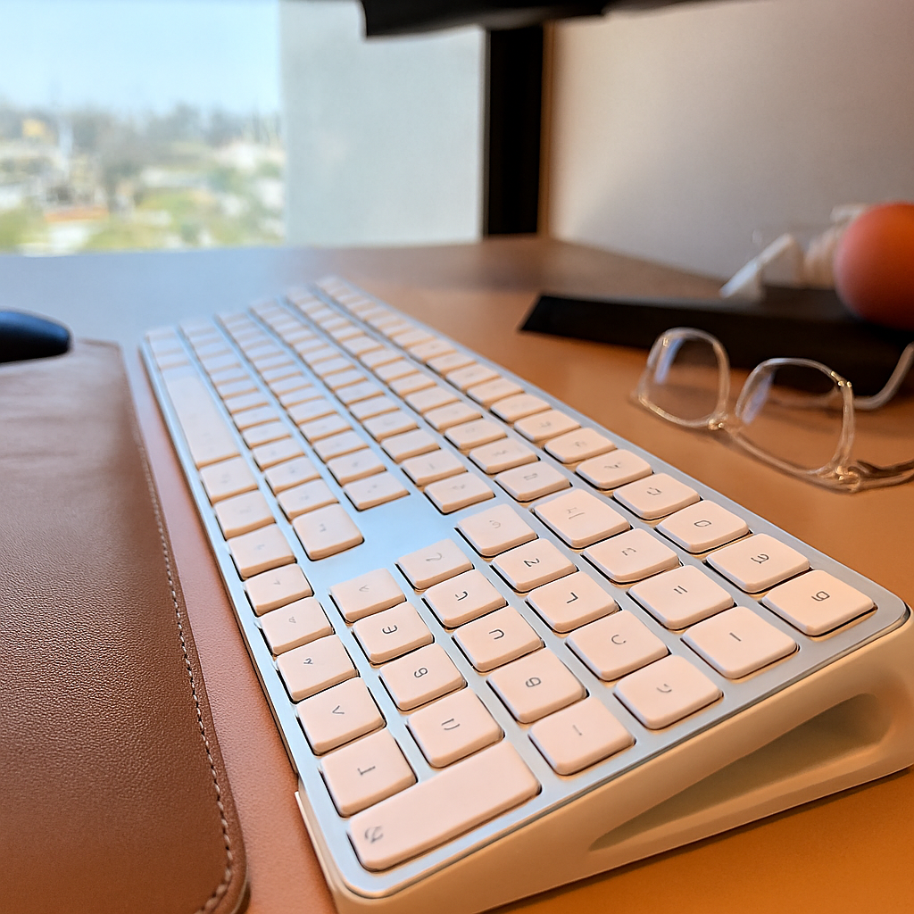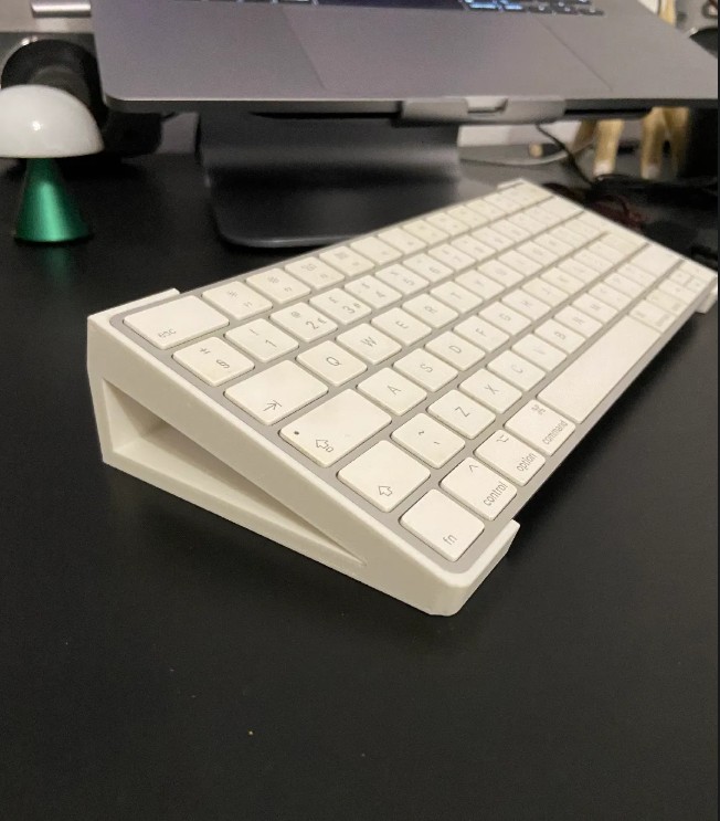 Soporte ergonómico diseñado para elevar tu Apple Magic Keyboard a un ángulo de 15°, mejorando la postura de tus manos y la comodidad al escribir. Fabricado en impresión 3D, ligero y resistente, cuenta con gomas antideslizantes en la base para asegurar firmeza y estabilidad en todo momento.