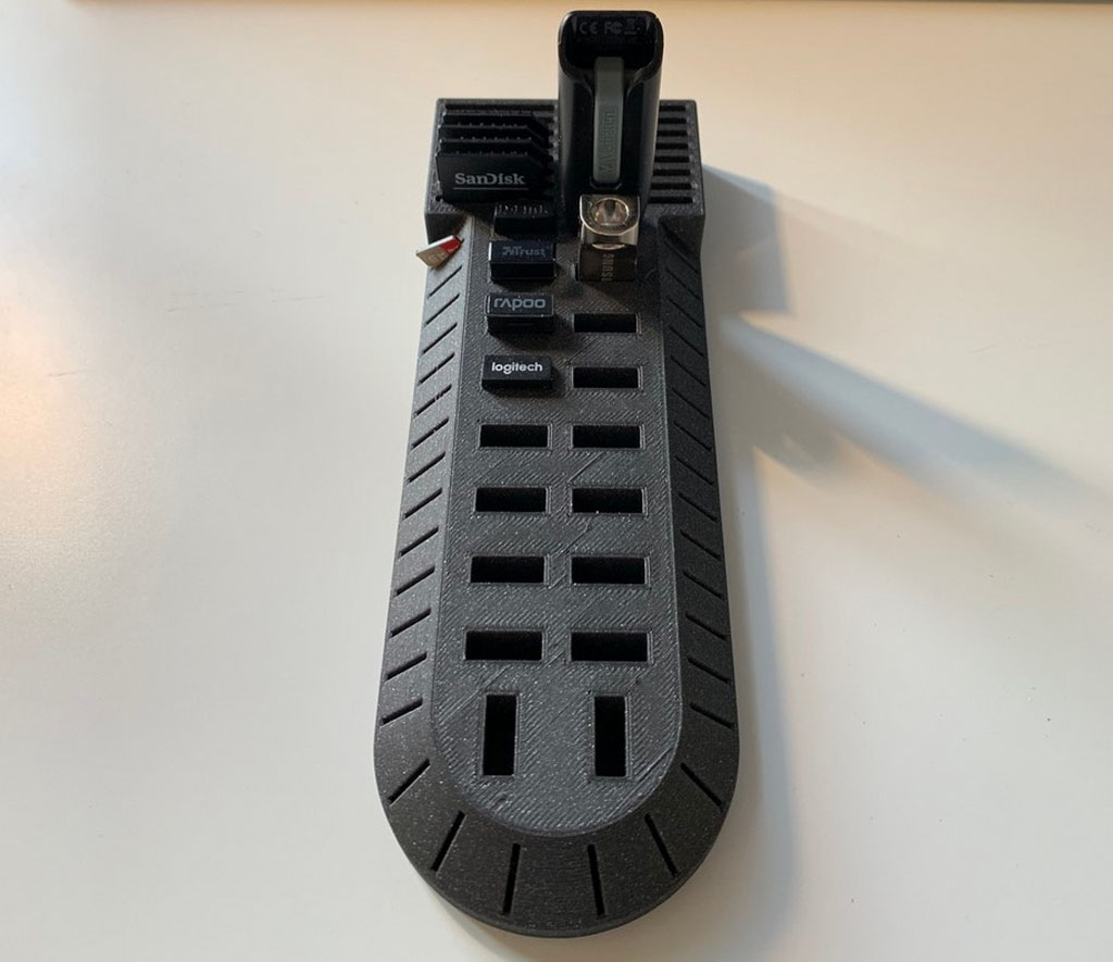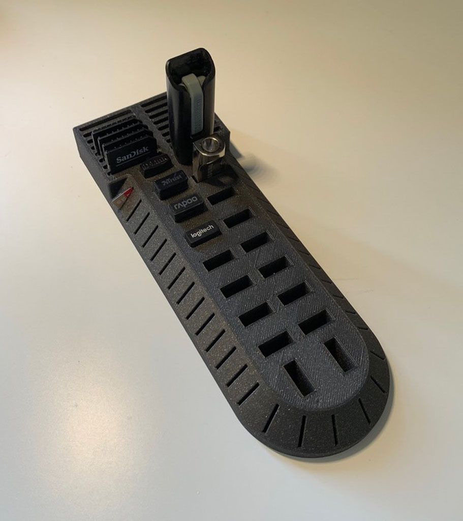 Organizador de tarjetas microSD, SD y pendrive, permite almacenar hasta 34 tarjetas microSD, 18 pendrives y hasta 16 tarjetas SD, impreso 3D (No incluye tarjetas o pendrive).