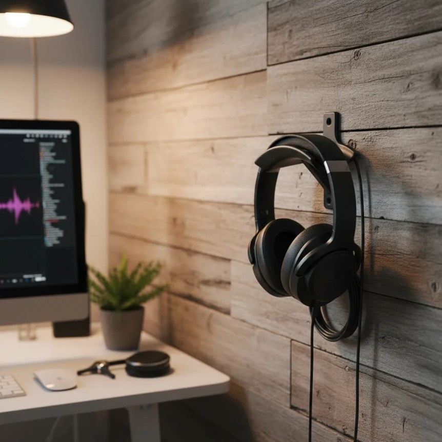 Soporte de audífonos para muro, medidas 80x94x51 mm. (No incluye audífonos)