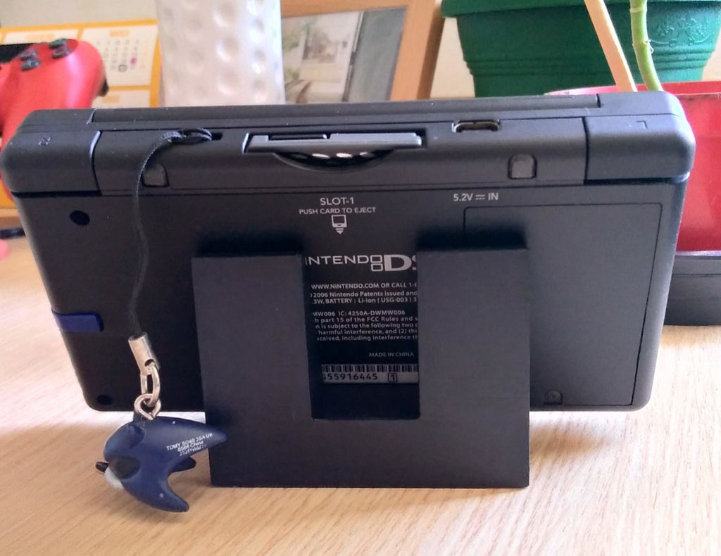 Soporte de mesa Nintendo DS y 3DS impreso en 3D material PLA, (No incluye consola ni cable cargador).