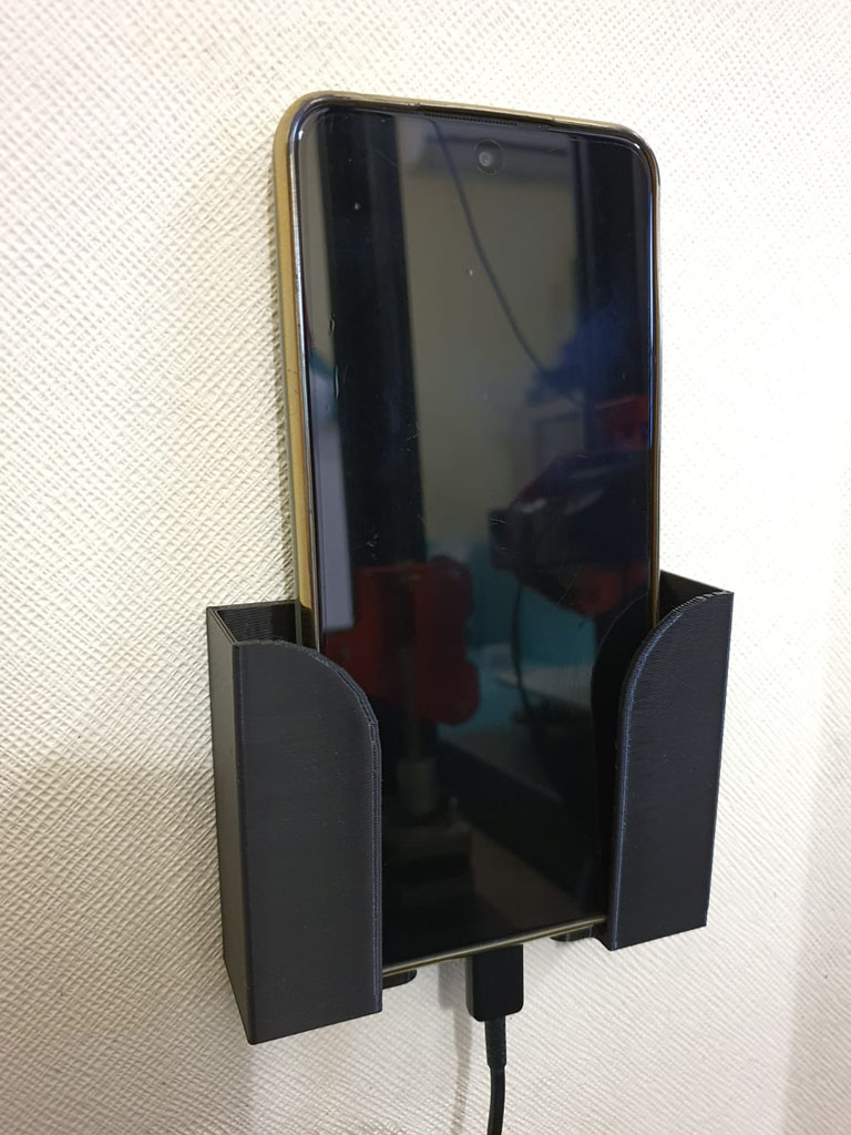 Soporte para, teléfono de muro impreso en 3D (No incluye teléfono), permite conectar cable cargador.