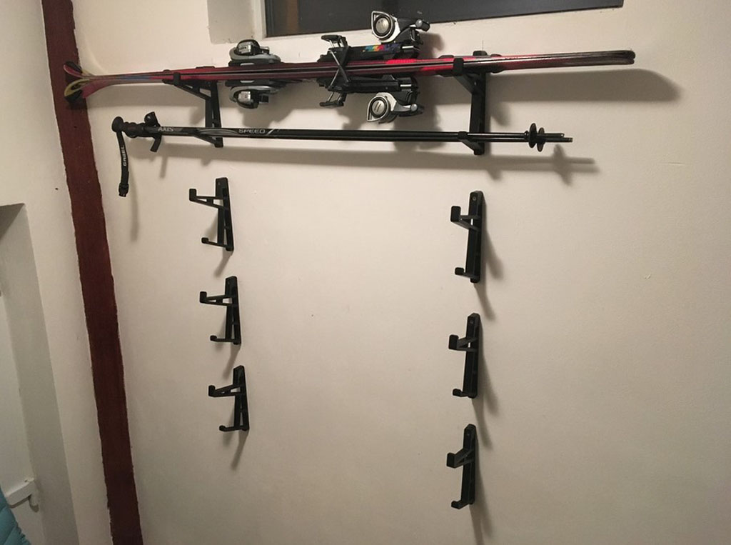 Soporte de muro para ski y bastones, instalación horizontal tal y como se muestra en la foto.