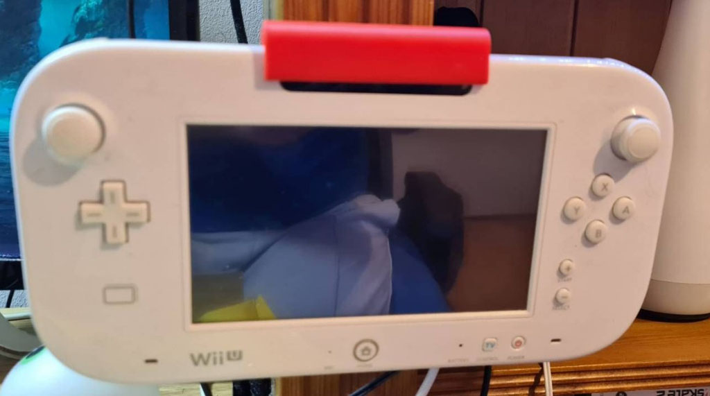 Soporte compatible con gamepad Wii U, se desliza el gamepad e ingresa en las pestañas traseras de esta.