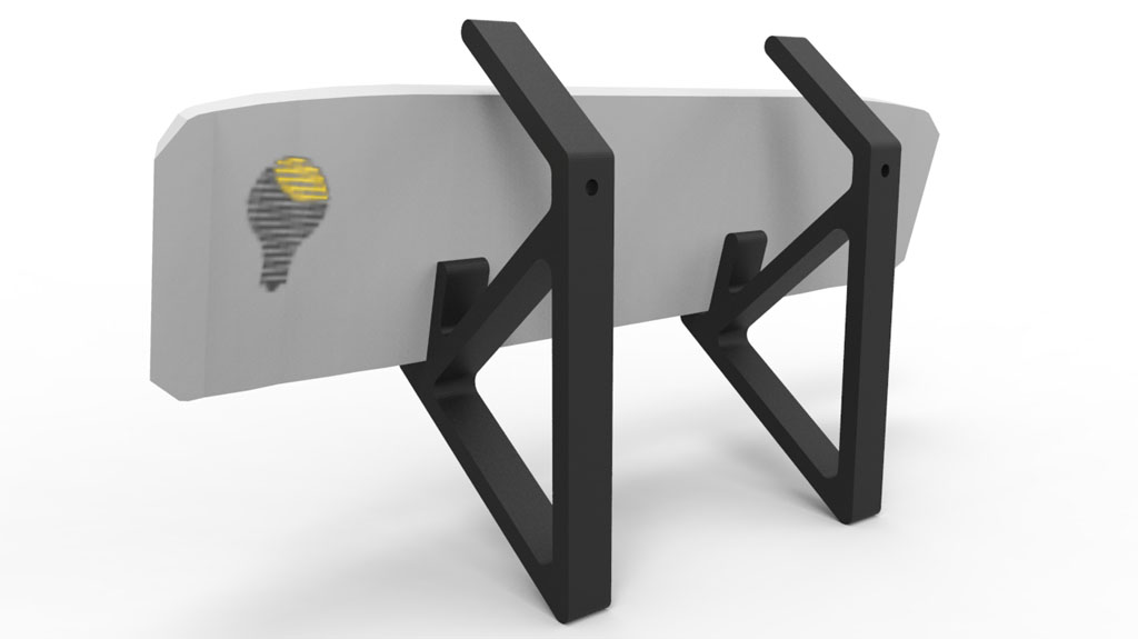 Soporte de muro para snowboards instalación horizontal tal y como se muestra en la foto.
