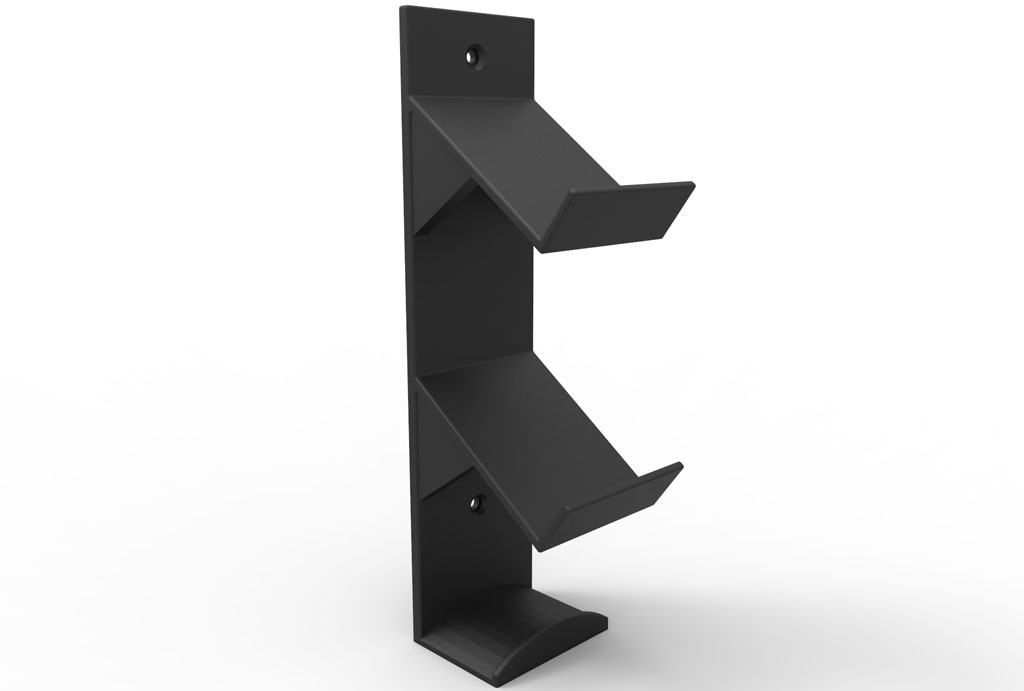 Soporte mural diseñado para organizar dos controles DualSense de PS5 y un audífono. Fabricado en impresión 3D con material PLA de alta calidad. Ahorra espacio, protege tus accesorios y mejora la estética de tu setup.