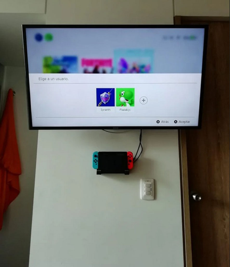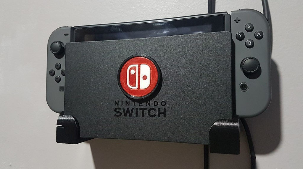 Soporte de pared o muro Nintendo Switch impreso en 3D material PLA, permite colocar el cable cargador por la parte de abajo (No incluye consola ni cable cargador)